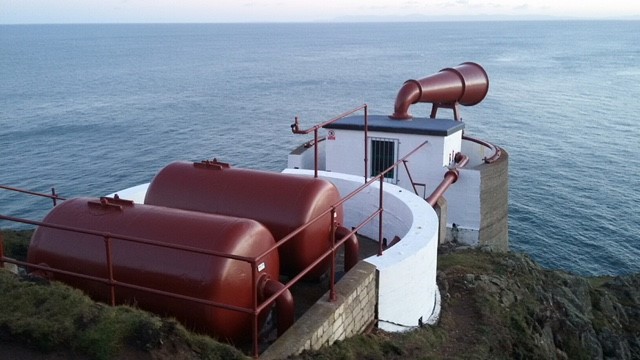 A Foghorn has been present at the Mull of Galloway since 1894. It last sounded as an aid to marine navigation in November 1987. During its working life, the Foghorn would be operated by Lighthouse Keepers should seaward visibility drop below 4 miles.
